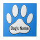 White Dog Paw Print On Blue Add Name Tile