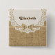 White doily with lace and linen natural burlap design that features a white round doily with lace on linen natural burlap with ribbon and bow in beige with metallic effect and a white jewel. Text in brown. Note that lace, burlap, flower and jewel are all “printed on” and not real fabric, metal, gem or crystal. This elegant, sophisticated and romantic design with a rustic essence is fully customizable and can be personalized.