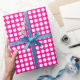 A wrapping paper designed with a white dot pattern on a hot pink background. Customize the hot pink background among other options.