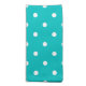 A pattern of polka dots in a nice turquoise - teal color with white spots.