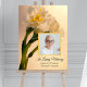 Remember the life of your loved one after their death with the elegant White Double Daffodils Celebration of Life Funeral Foam Board. This memorial poster board features a digitally painted floral photograph of double white spring narcissus flower blossoms on green stems with an off white cream colored background and the words In Loving Memory. Feel free to change the text and personalize it with a remembrance photograph, name and dates.