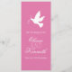Double-sided simple white doves with two pink ribbons wedding reception dinner menu. Uniquely designed by Sarah Trett.