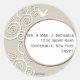 An updated, symbolic design for a modern, religious sticker. A cluster of swirls and an oval frame surround your message or address. The oval is crowned with a white dove conveying innocence, gentleness and peace.