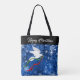 Personalize this Unique"One of a Kind" White Dove Christmas Tote Bag! It Features a White Christmas Dove Carrying an Olive Branch with Flowing Red & Green Ribbons saying...Merry Christmas!