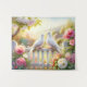 Two white doves rest together on a weathered garden gate, framed by blooming roses and soft spring foliage beneath a warm, glowing sky. The scene evokes gentle romance, peace, and timeless countryside charm, blending cottagecore nostalgia with a dreamy watercolor aesthetic. Pastel pinks, creamy whites, and sunlit greens create an airy, serene mood that feels tender, hopeful, and quietly joyful. The composition feels storybook and intimate, inviting a sense of calm, connection, and slow living inspired by floral gardens and rural beauty. AI generated artwork.