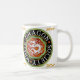 Chinese dragons come in different colors, sort of color coded. Emperor Xuande's royal rug was the inspiration for this mug art. This dragon is cooled by jade colors but also heated by deep red, like glowing embers. Golden long dragons -- almost like legged serpents -- flank the royal emblem. Now, it's up to you whether you would like to taste tea or coffee from this majestic mug. What? You want a purple dragon? OK, I'll work on it.