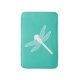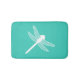 White Dragonfly Silhouette On Turquoise Bathroom Mat