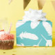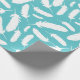 Add a light and airy touch to your presents with this feather print wrapping paper. This pattern features illustrations of white duck feathers against a teal or aqua blue colored background.