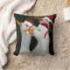 Decorate your home for the holidays with this square throw pillow that features the whimsical image of a gaggle of white ducks with orange bills wearing red Santa hats. Select your pillow fabric style.