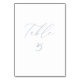Set the tone for your elegant seaside celebration with this minimalist table number card from the Coastal Chic collection. Featuring soft dusty blue script on a clean white background, it brings effortless sophistication to your wedding tablescape. Perfect for beach weddings, coastal venues, or any event with a refined, airy aesthetic.