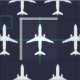 White E175 Jet Airplane Pattern on Navy Blue Fabric