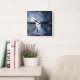 White Egret, Full Moon & Aurora Wildlife Scene Square Wall Clock