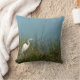 White egret standing in grass w water throw pillow