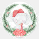 This cute White Elephant sticker features a watercolor elephant peeking out from a Christmas wreath.