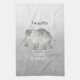 A kitchen towel on gray and a white elephant.