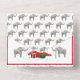 Design features room for White Elephant party invitation information such as where, when, "Ground Rules" for playing, plus a separate tear away card for responding. All text is in red. A pattern of white elephants adorns the background.