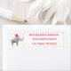 Design features image of a white elephant wearing a Santa hat and standing next to return address, which is in red lettering. Background features red and green speckles. Designed to coordinate with the "White Elephant Christmas Party Theme Collection."