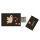 White elephant silhouette and pink flowers on black Wood Flash Drive.