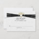 Gold heart with baby's breath bouquet and black ribbon border on elegant white embossed-like design for wedding RSVP.