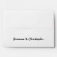 This design with its inside red pattern makes a trendy choice for your invitation needs. For a different look, you can experiment with different paper types to see which you like the best. You can also change the envelope color and the text.