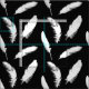 White feather print on black fabric