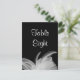 Feathers are one of the more popular trends in wedding design and this is an easy way to incorporate just a touch into your decor. This is part of the complete wedding line White Feathers. This table number postcard is also available as a stand alone card.