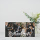 A customizable wedding thank you photo card featuring white feminine script. This thank you card will be perfect for weddings, graduations, and other events. A postcard and flat version are available.