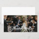 A customizable wedding thank you photo card featuring white feminine script. This thank you card will be perfect for weddings, graduations, and other events. A postcard and flat version are available.