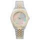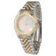 White fire opal watch: the opal on this dial is a digital image and not a real precious stone. The watch case and bracelet are not precious gold.