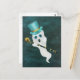 White Floating Ghost in Sky Top Hat Skull Cane Postcard
