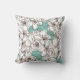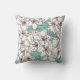 White Flora Bunch Aqua Teal Brown Throw Pillow