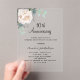 A frosted background. Decorated with a white floral, peony flower and green watercolored eucalyptus greenery. Personalize and add your names and the details