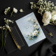 White Floral and Blue Pine Gold Wreath Wedding Invitation
