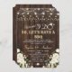 Unique card design featuring string lights, elegantwatercolor white cream floral corners, string lights, "I DO" with a ring replacing letter "O", on an old wood background. Use Personalise tool to add your info. See, also, my Delicate White Flowers Collection.