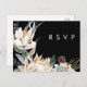 We designed this White Floral | Black Song Request RSVP Card to complete your rustic dark tropical wedding. With its bohemian watercolor greenery to its modern boho winter flowers, including protea, dahlia, and dried lotus, the design is sure to set off your moody, minimalist black and green theme. Change the text and add a photo to make it your own. Also, make sure to look through the rest of the collection to find coordinating items that will bring your whole wedding together! https://www.zazzle.com/collections/white_floral_collection-119896729923706651