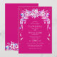 White floral cascading garland magenta wedding invitation