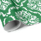 White Floral Damask Pattern On Green Wrapping Paper