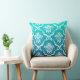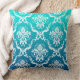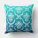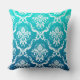 White Floral Damasks Over Turquoise Gradient Throw Pillow