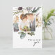 We designed this white floral flat photo wedding thank you card to complete your rustic dark tropical wedding. With its bohemian watercolor greenery to its modern boho winter flowers, including protea, dahlia, and dried lotus, the design is sure to set off your moody, minimalist green and white theme. Change the text and add a photo to make it your own. Also, make sure to look through the rest of the collection to find coordinating items that will bring your whole wedding together!