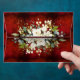 Gorgeous white and green botanical floral sprays. Scarlet rustic red distressed background. Gold splashes finish off this gorgeous wedding invitation envelope. Beautiful bold red for any season.