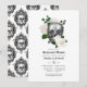 Whimsical vintage floral skull gothic wedding rehearsal dinner invitation in accents of black and white customizable to your event specifics.
