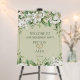 Elegant white watercolor floral and greenery Engagement party welcome sign with a gold trim and a cute heart. Contact me for assistance with your customizations or to request additional matching or coordinating Zazzle products for your event(s).