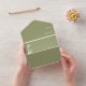 We absolutely loved how these wedding invitations turned out! We went with the standard paper stock, and it is plenty thick. One thing we probably would have changed is not doing the big white block on the front for the recipient address. Our invitations are a dark green. When we went to Staples to look at the options for labels, we saw some cute kraft stock colored ones that would have looked really cute on the dark green rather than using matte clear labels within the white block if that makes sense. They are still adorable though. I just fancied up my matte labels with a little leafy design and pretty font for the names so I feel like it helped it look more cohesive. Also, if you’re worried that they look pricey, make sure to put your quantity in because the price goes down significantly. We found this to be a super affordable, efficient and unique option that checked all of our boxes. When folded, they are the size of a little Google home screen see pictures. Perfect! Colors look exactly as we expected and the printing quality is clear and consistent.