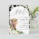 White Floral Highland Cow Baby Shower Invitation