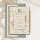 White Floral Hydrangea Roses Gold Cream Wedding Invitation