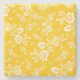 White Floral on Yellow Spring Stone Coaster by Gerson Ramos.