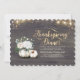Plain white envelopes are included with paper invitations and will come to fit the invitation size you select. If you don’t need the envelopes, you may choose to not receive them by selecting the dropdown below "Envelopes" and choosing "None." If you’d like to have a design on your envelopes, you can browse all of these available envelopes to find the design that complements your White Floral Pumpkin Rustic Thanksgiving Dinner Invitation.