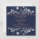 Stylish and trendy simple white floral Save the Date card.