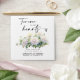 You can honor the life of your loved one by planting seeds in their memory. This design features an elegant handwritten typography script wording that says "forever in our hearts" with heart paired with a serif black text and white chrysanthemums and can be personalized with the name of the departed loved one and the birth year and death year. You place a seed packet inside the envelope but you will need to buy those seeds separately.