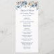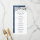 This wedding program card matches the White Floral Swan Wedding Invitations and other wedding products in our store. The front has a top border of white and blue roses, with your custom text below. The back has an image of a beautiful white swan floating beside a floral bouquet, his reflection mirrored below him on a dark blue gradient background. Very elegant!